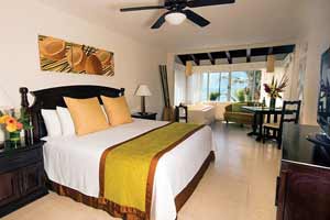 The Ocean Front Swim Up Suites at Hidden Beach Au Naturel Resort are set amongst exotic gardens, providing beautiful landscapes & featuring a private terrace. Direct access to the pool’s lazy river situated at the edge of the terrace is offered with a comfortable in-pool seating area and cocktail table. This beachfront lazy river connects with a large swimming pool and an impressive beachfront hot tub.